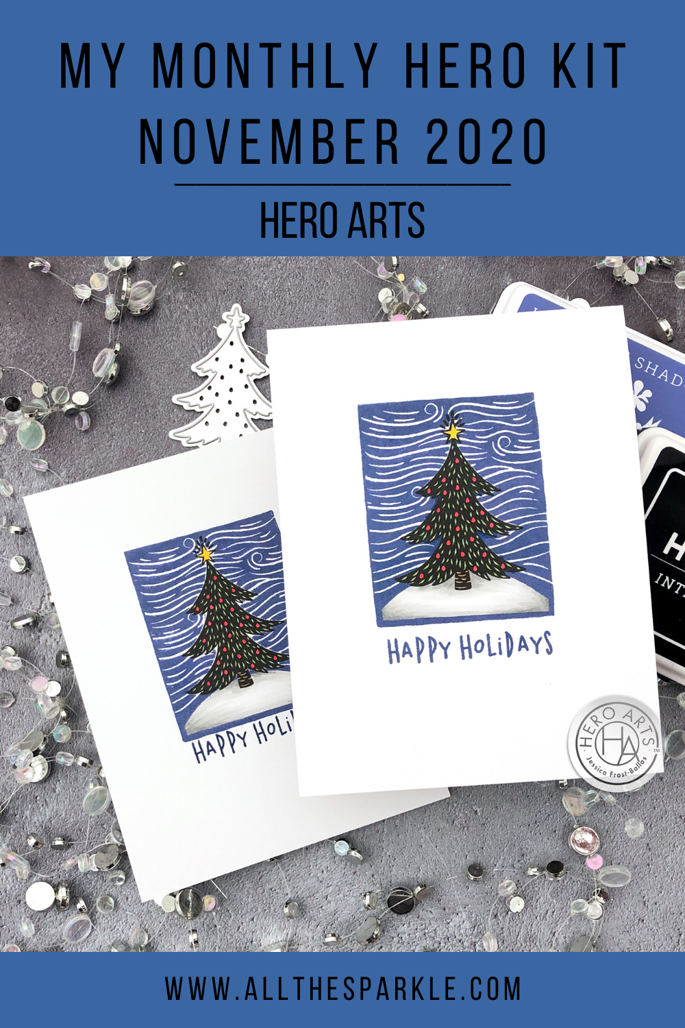 Good afternoon! Today is release day for the November My Monthly Hero kit from Hero Arts!! This cheery winter kit is now available for purchase at Hero Arts; and remember, once they’re sold out, they’re gone for good so make sure to head over and shop soon! I expect this kit will be a FAST sell-out!! And don’t forget that you can subscribe to the kits so that you never have to worry about missing one!