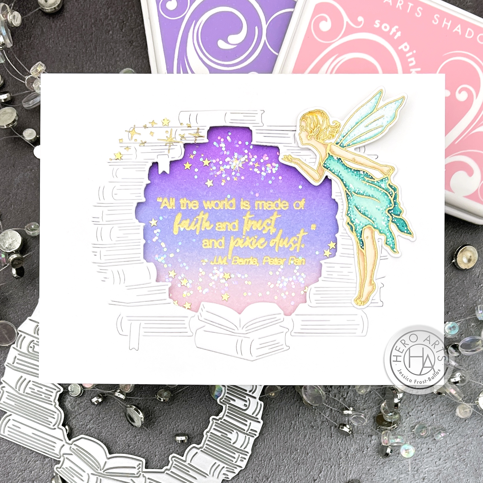 Such a cool idea of putting book titles on that background stamp. I love that idea. Your Pixie Dust card is beautiful. I love your ink blending. I never get tired of seeing your color combos.