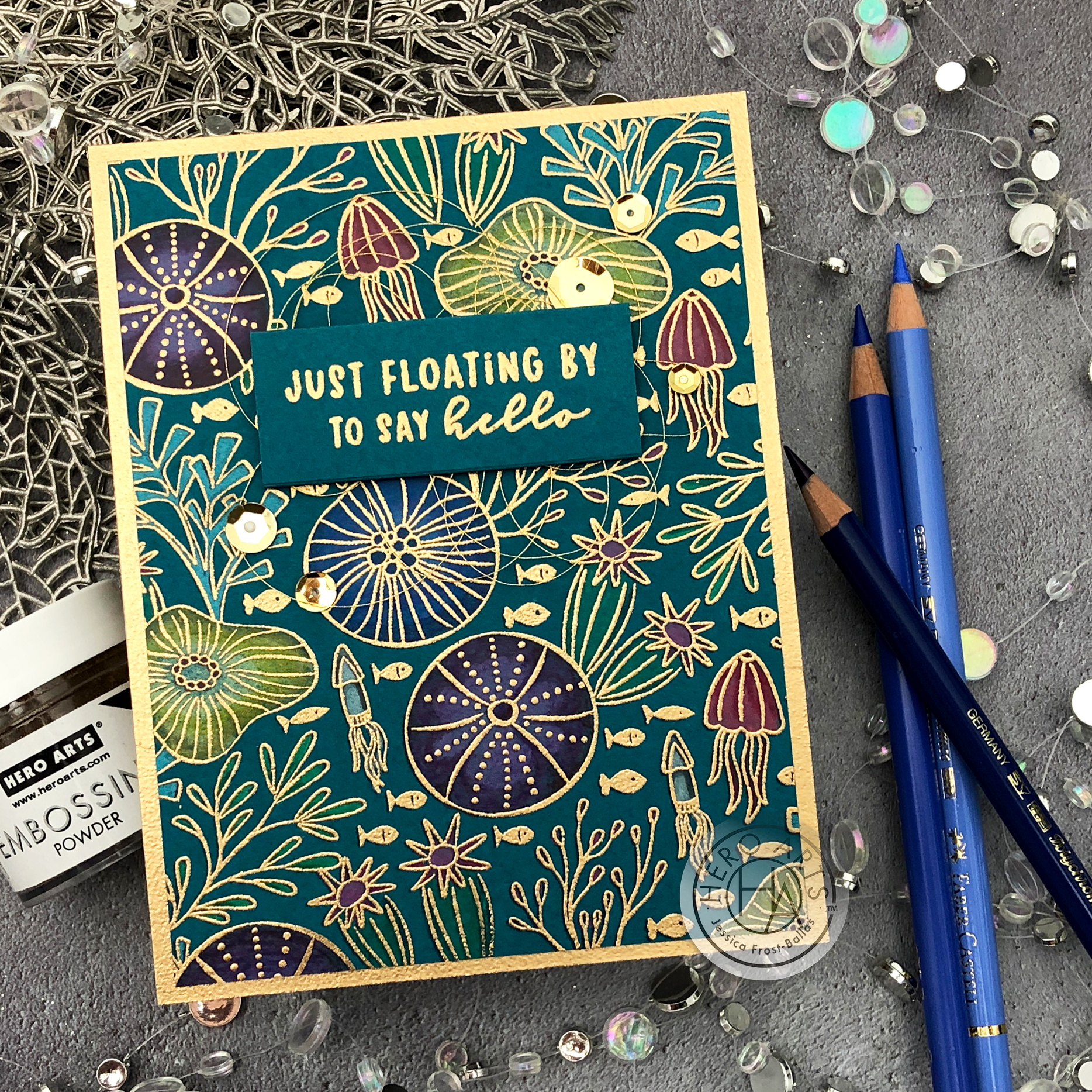 Fabulous color blending on your awesome underwater scene, Jess, & I love the brass embossing on the 2nd one! Great job!!