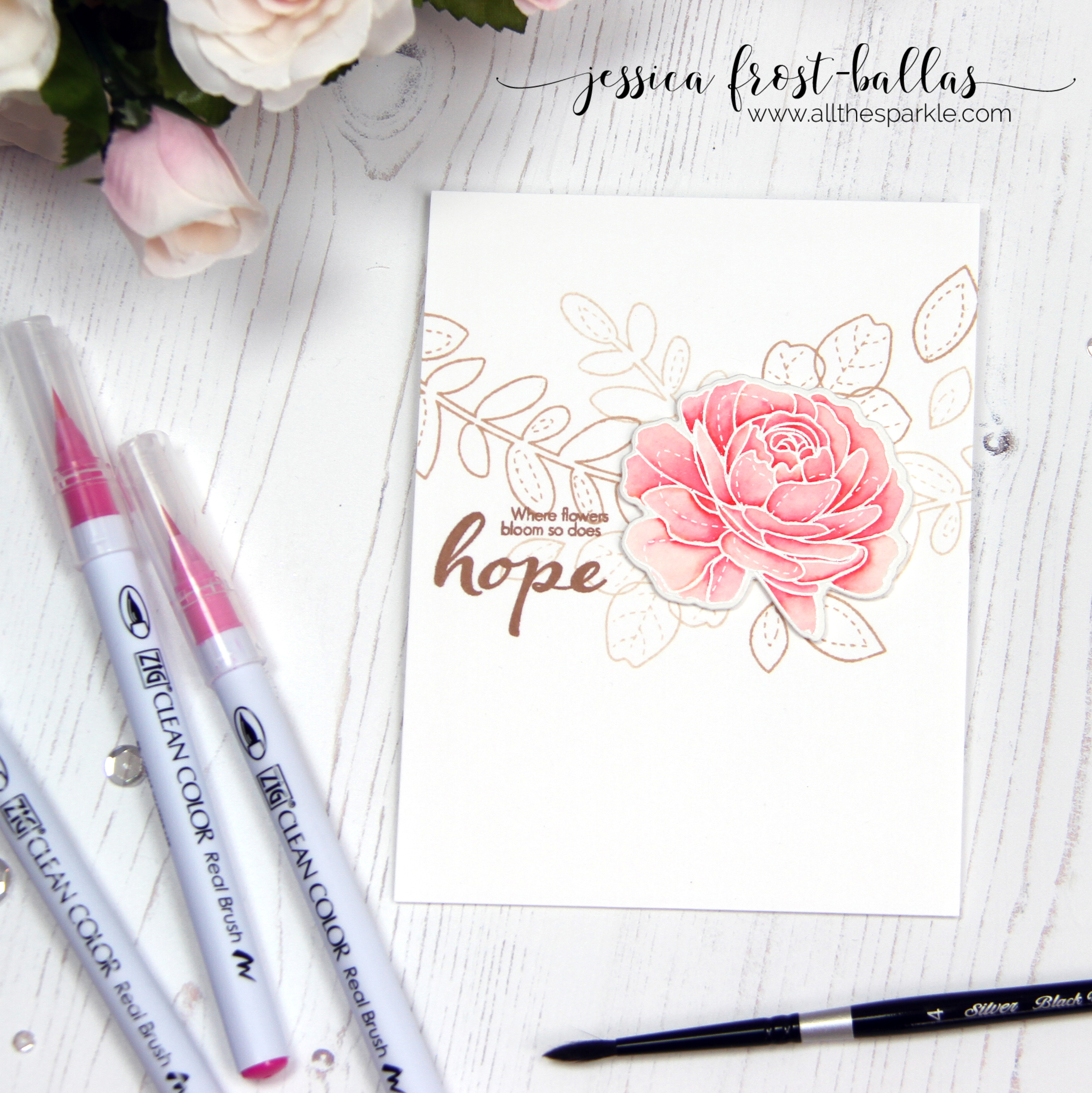 Today I’m sharing my final cards using the More Spring Flowers that I watercolored with zig clean color real brush markers a few weeks ago! You can find my first card here!
