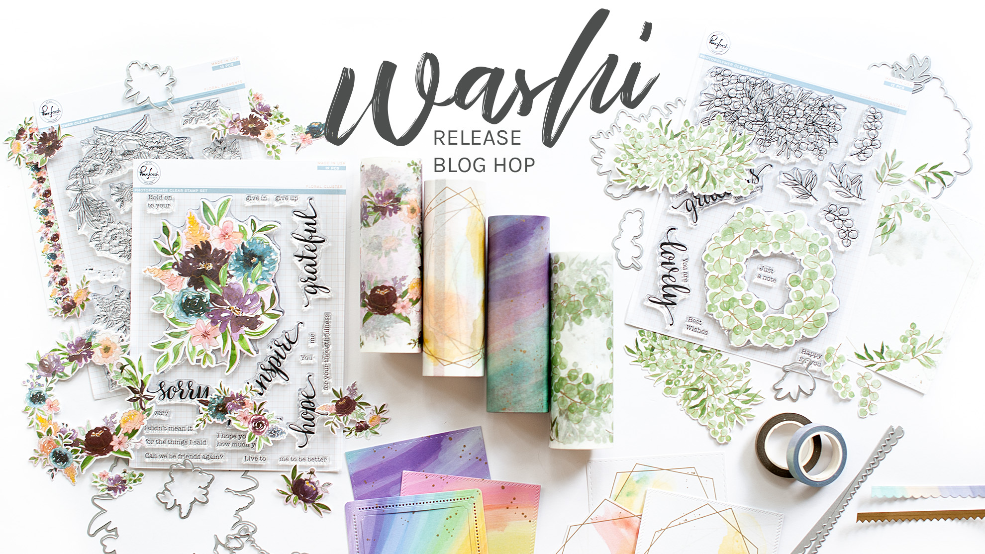 Good morning! I’m thrilled to be a stop on the hop of the Pinkfresh Studios Washi release blog hop today! I’ve created four cards today using the new washi tapes and stamps and dies along with some older Pinkfresh Studio products!