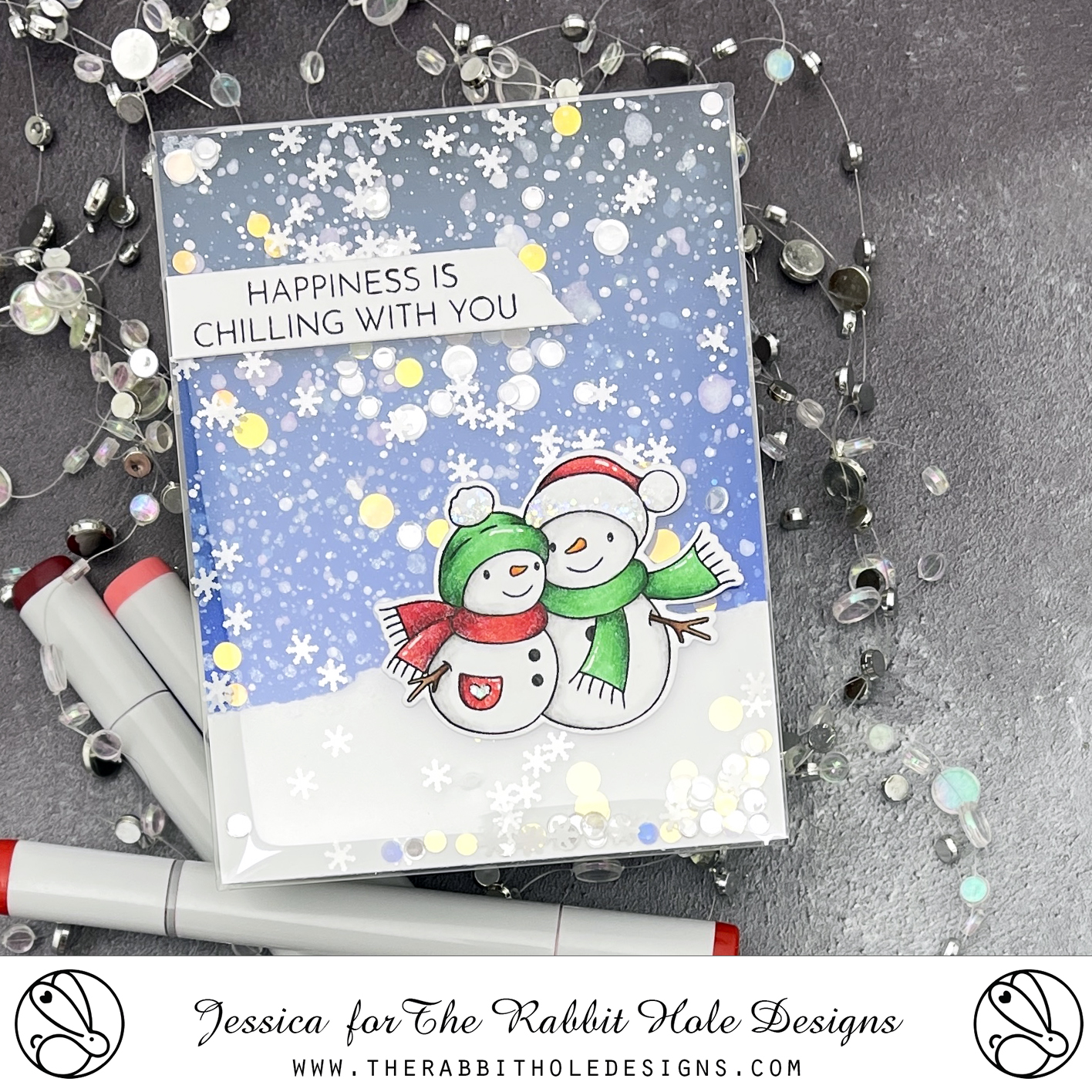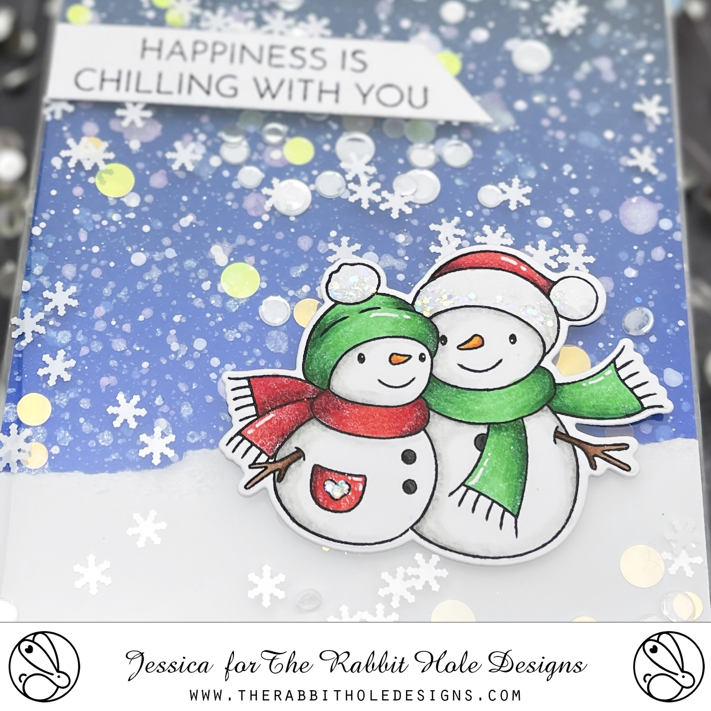 Good morning! Today I’m sharing a card using the Christmas release from The Rabbit Hole Designs! Get a headstart on your holiday crafting with four adorable new sets from Agota Pop! Today I’m featuring these cute snowmen from Warm and Cozy in a fun holiday shaker!