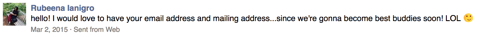 …and yes I scrolled back through hundreds of thousands (literally) of Facebook messages to find this one…we won’t discuss how long that took. Ha.