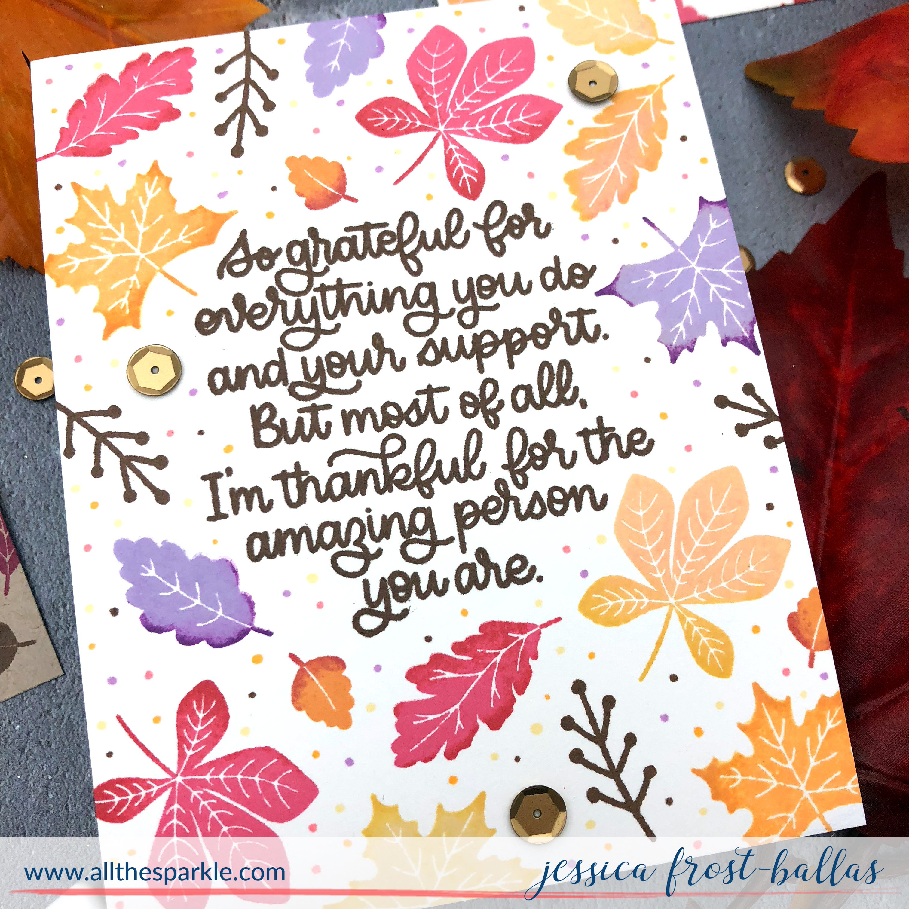 For today’s cards I just focused on a few sentiments in the kit and the pretty solid leaves…I barely scratched the surface of what’s in this kit!