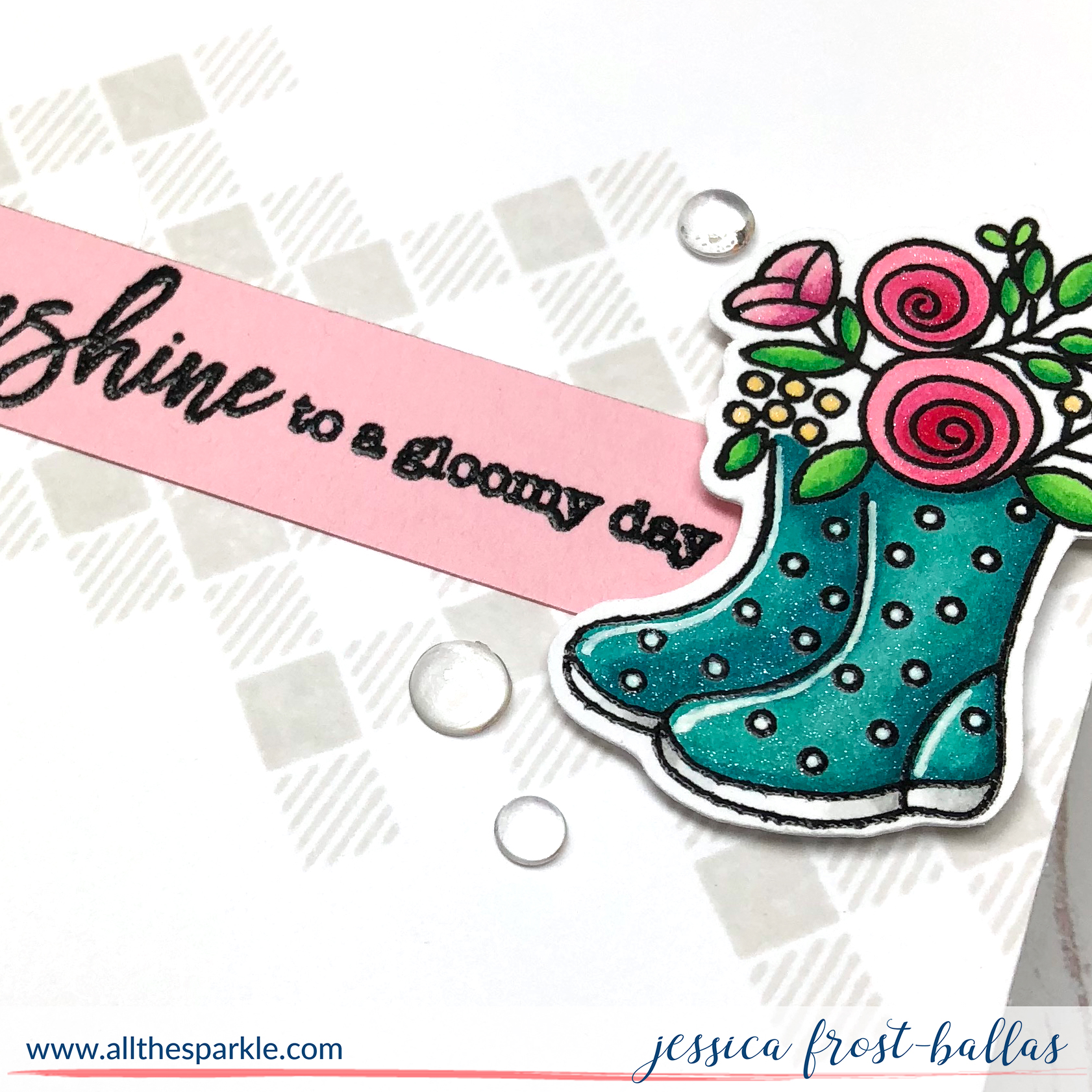 Such a sweet card! Those little rain boots just make my heart pitter pat. I LOVE the diagonal plaid backdrop you created.