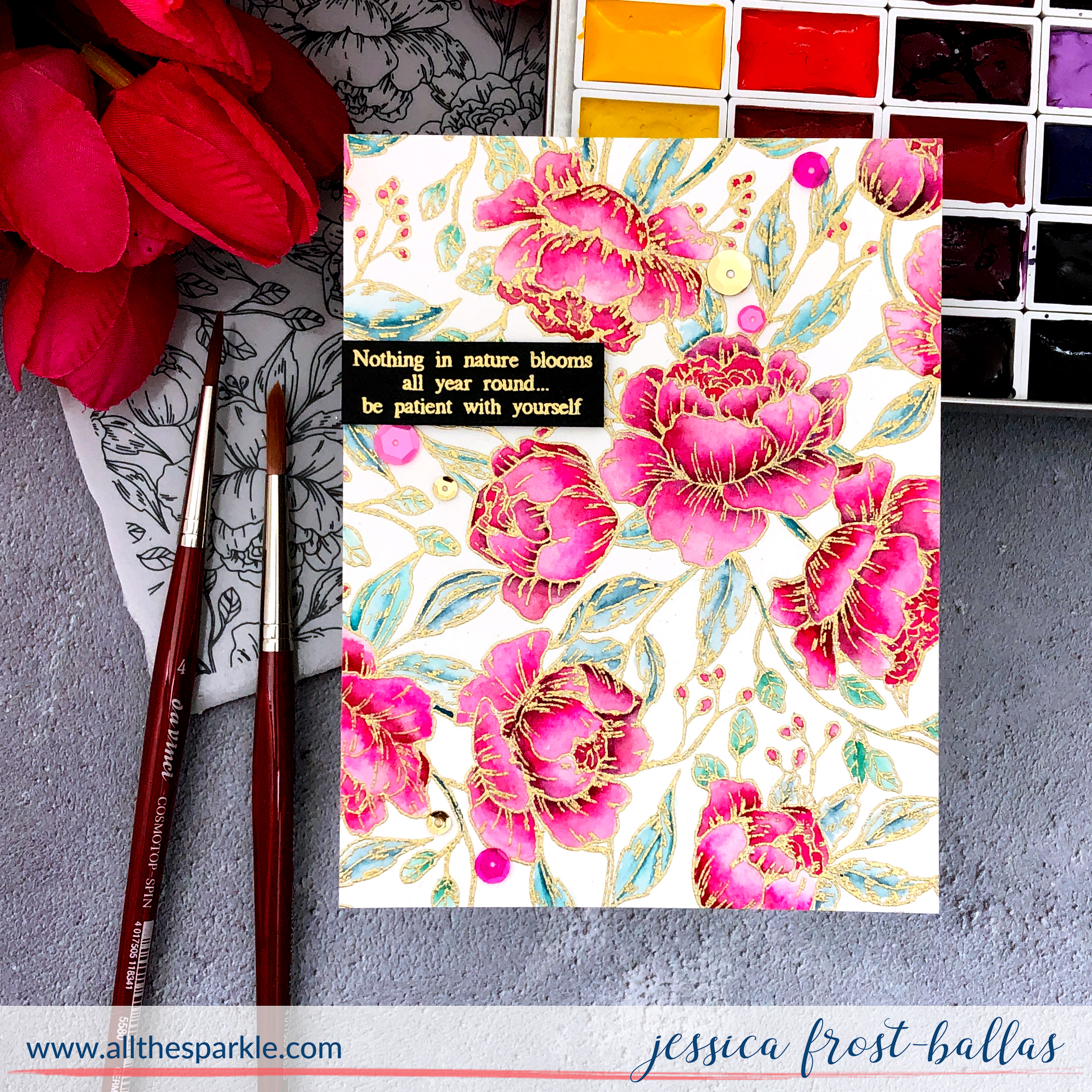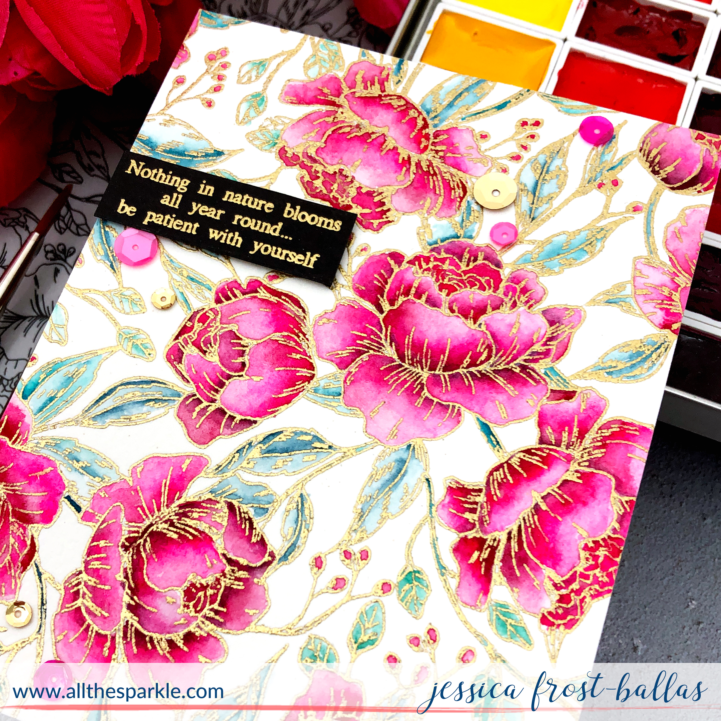 You are inspiring! Love the gold embossing and your watercoloring! Would love a video on this.