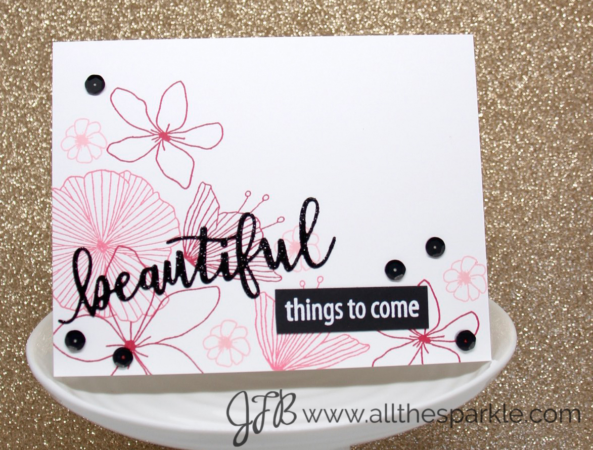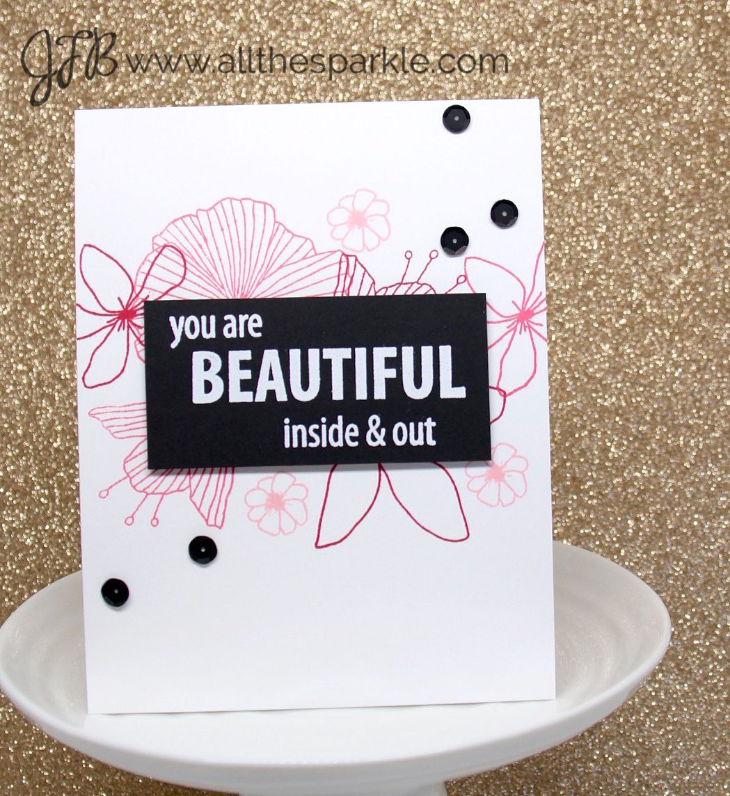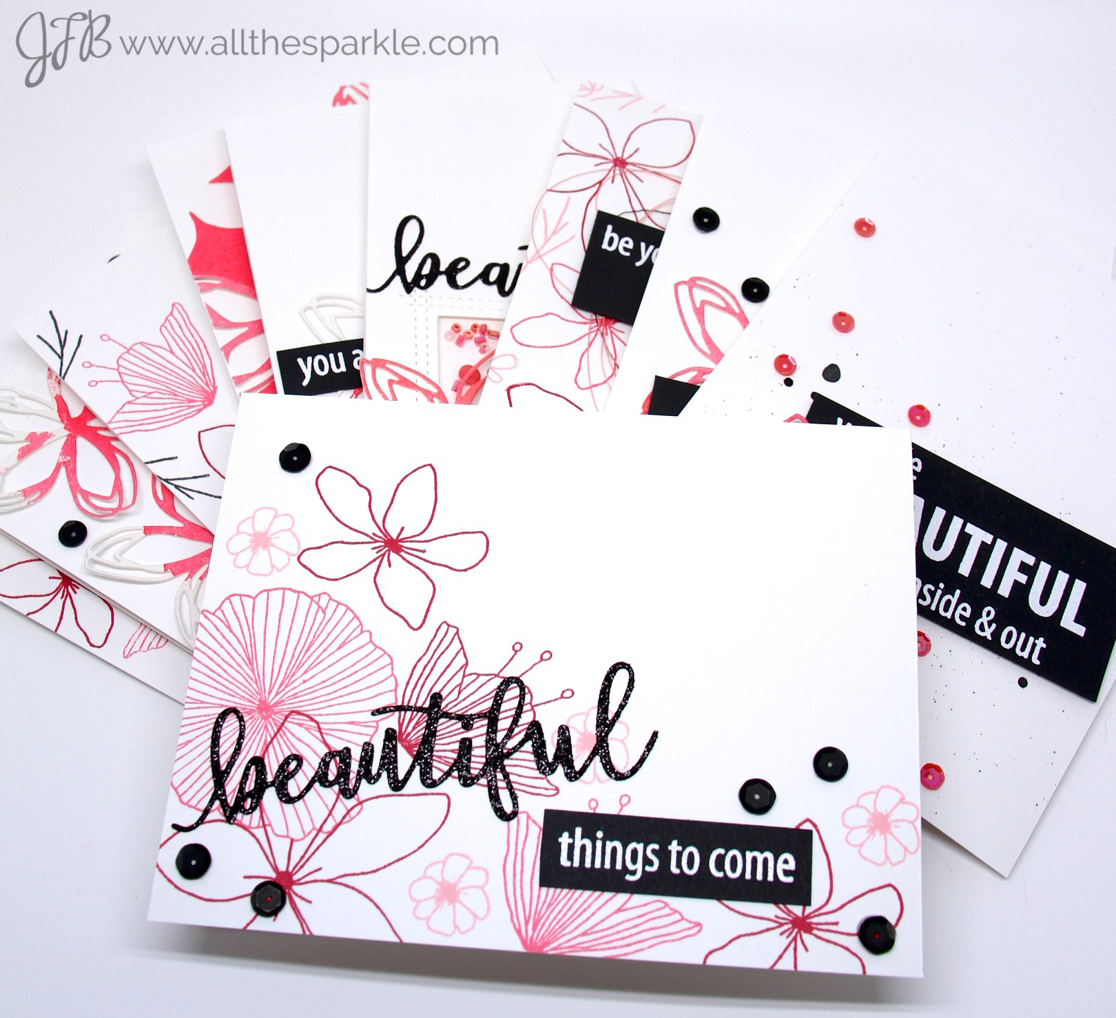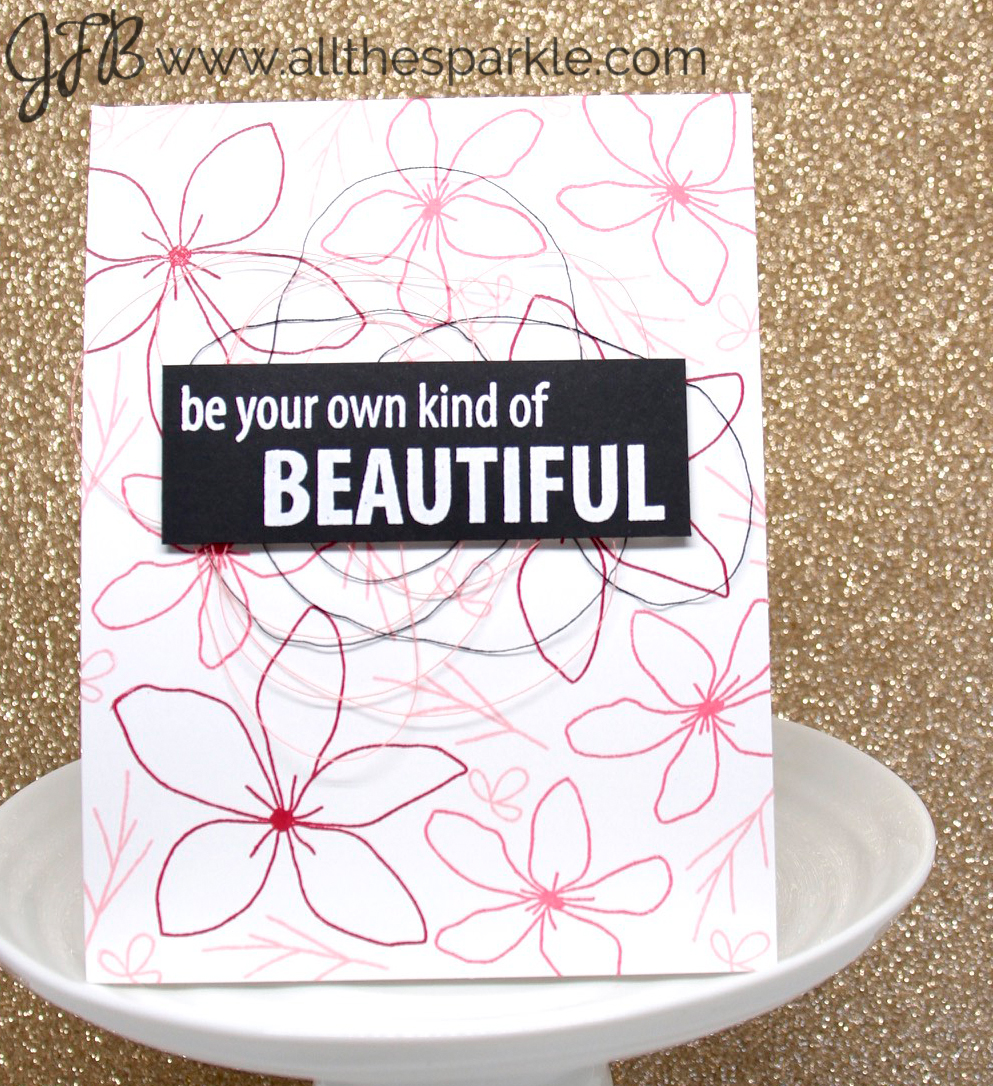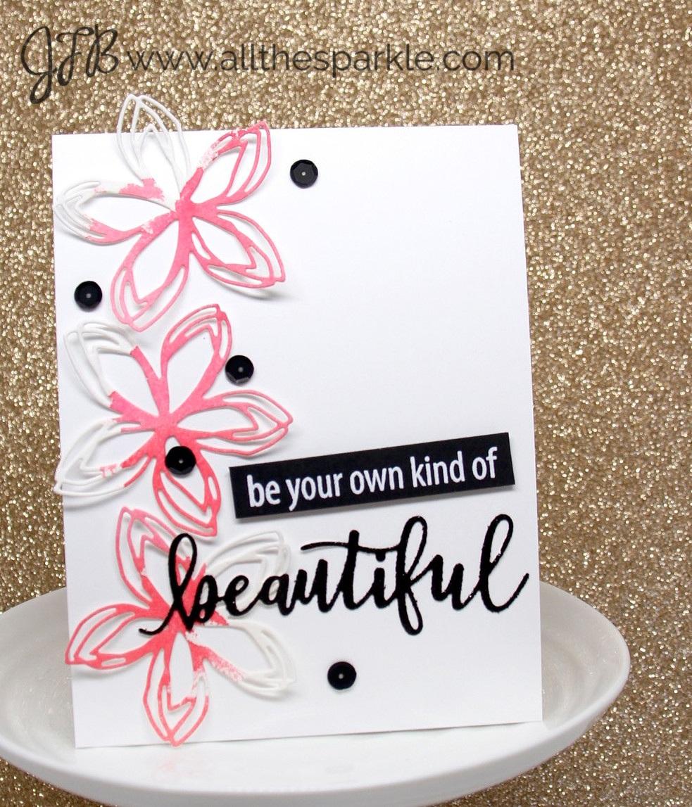 - I die-cut the ‘beautiful’ word die with black glitter paper for a little extra sparkle