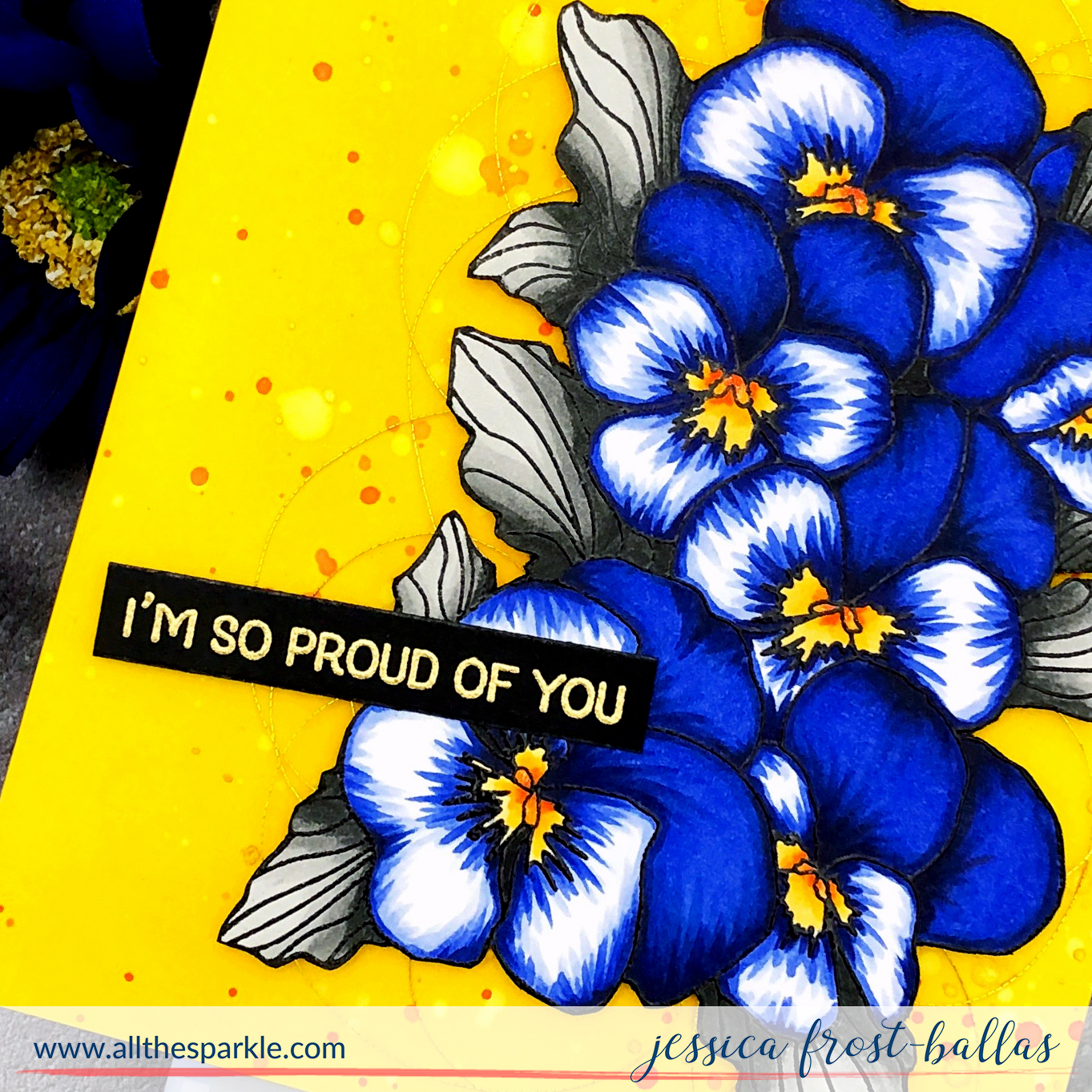 Wow! I love the brightly colored pansies against the yellow background. It is so striking and makes a huge impact! Gorgeous!!!