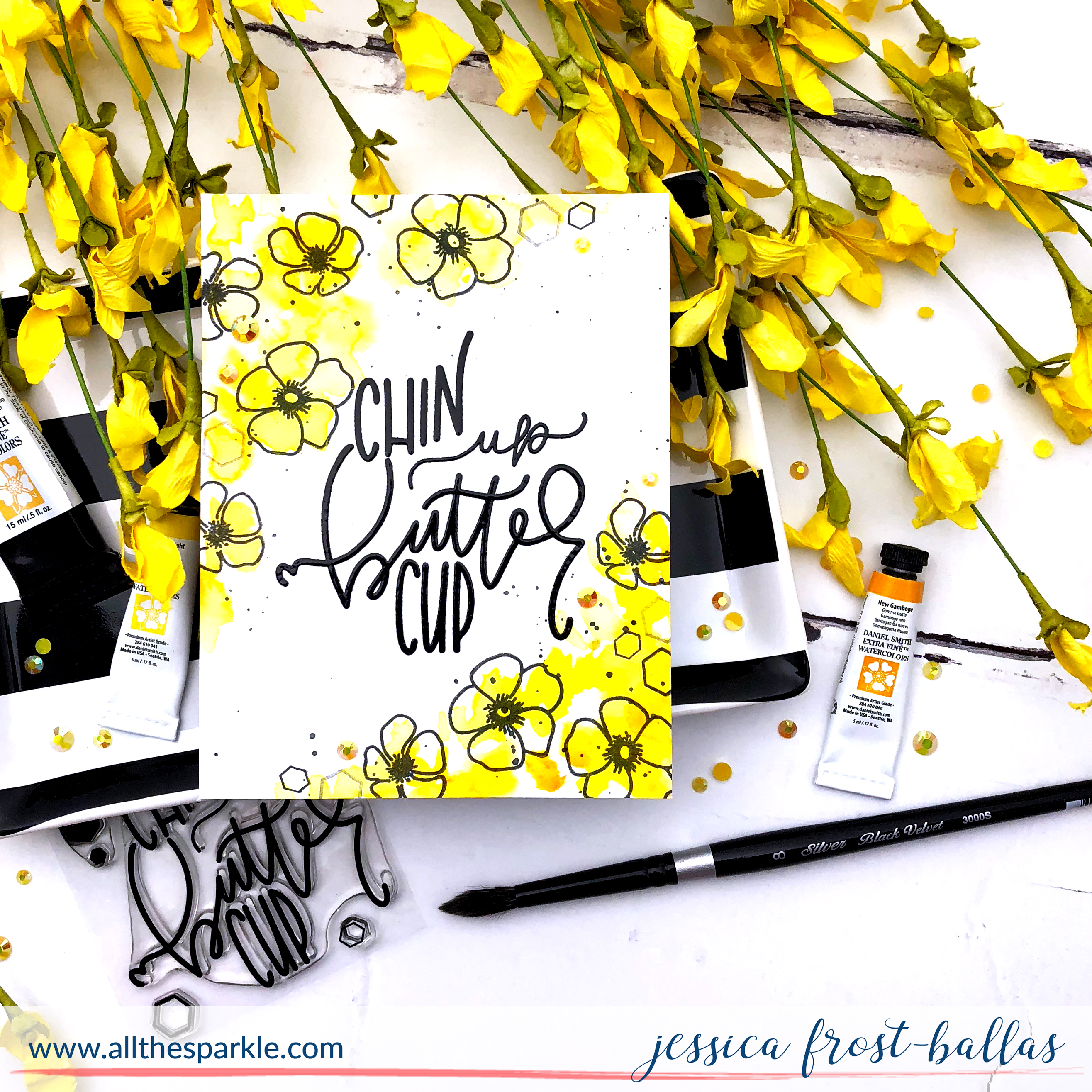 Good morning! I have a bright and cheery card to share today! It’s been a rough couple weeks for a variety of reasons and when I saw this adorable stamp set from The Ink Road over at Simon Says Stamp I just had to snag it. I have fond elementary school memories of holding buttercups under my chin during recess with my friends, because the saying goes, if you see yellow on your chin you like butter! 😉 I have no idea why doing that became a thing or if it has anything to do with the sentiment, Chin Up, Buttercup, but I needed something cheerful and definitely fit the bill!