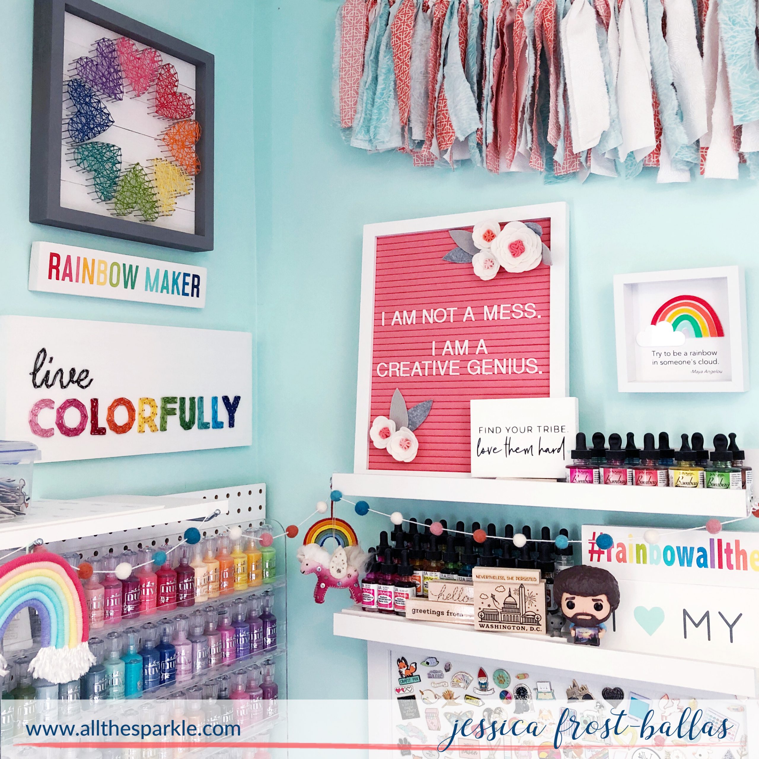 And on a final note I just want to remind you that crafting is my job so I do have a lot of products. Products that have been given to me for work and also products I’ve budgeted and saved for over the last 7 years to help me with my work (your support by shopping through my affiliate links always helps with this and I am so very grateful for that!). If you’re a regular subscriber or viewer you know that the items I’m sharing are items I love that you see me use regularly; but I also think it’s really important that no one ever feels like they need all or even most of these products to create and do what they love! Find what works for you and your budget…but always try to make sure you include a few things that just make you smile (like a Bob Ross Funko or an otter enamel pin)! 🙂