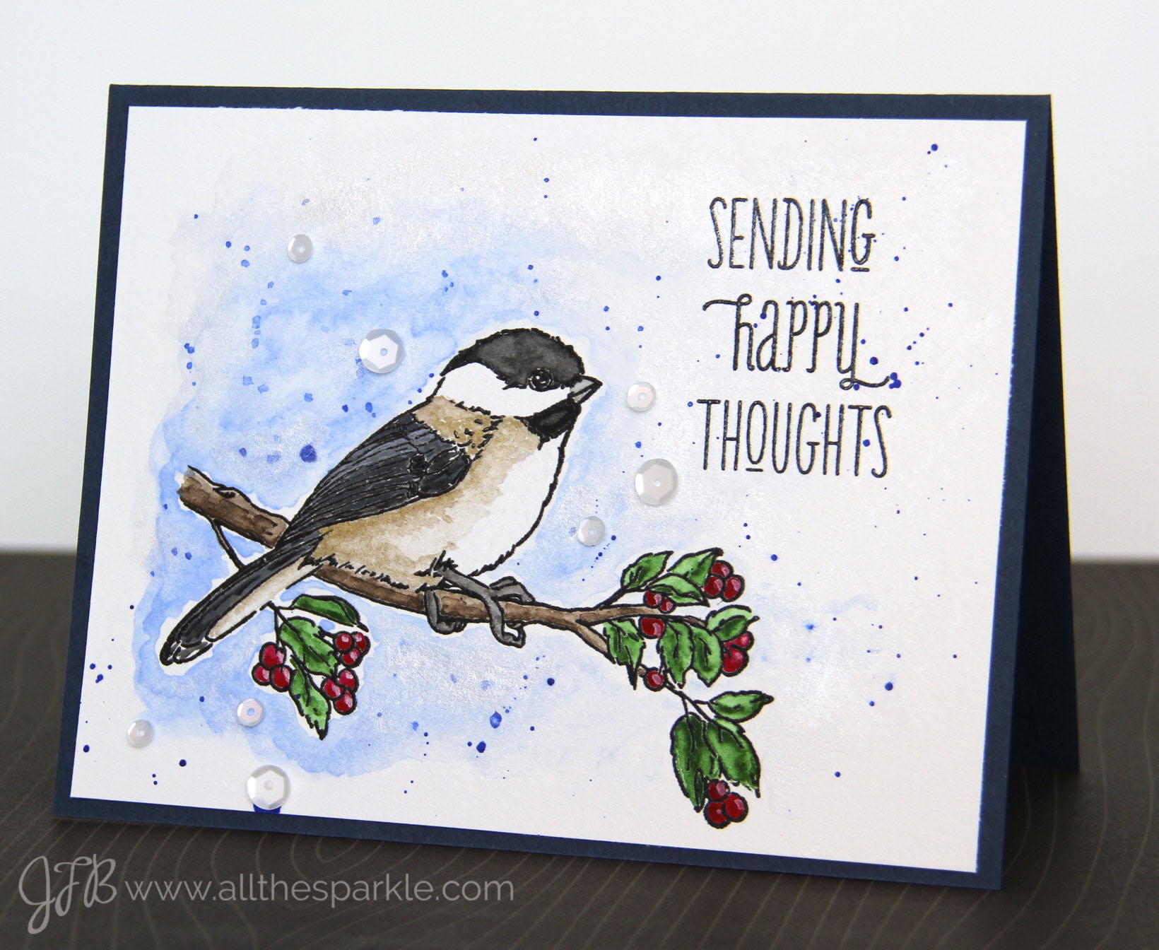 Gorgeous water coloring! I love those sweet chickadees too. So beautiful!