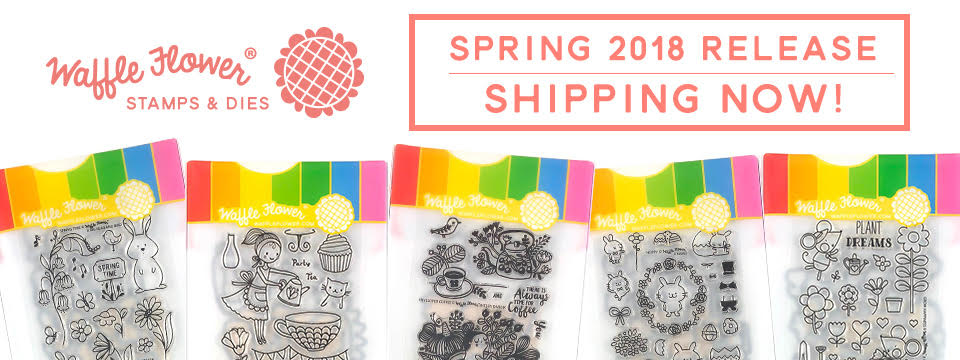 Good morning! I am so thrilled to be a stop on the hop celebrating the Spring 2018 release for Waffleflower! One of my favorite things about Waffleflower is their collaboration with artists to create innovative and really interesting stamp sets! And when I saw the adorable critter stamps illustrated by Kamo I fell head over heels for them. Honestly, I never thought I’d get excited about a frog stamp set…but look at Toadally!!! Isn’t it adorable?